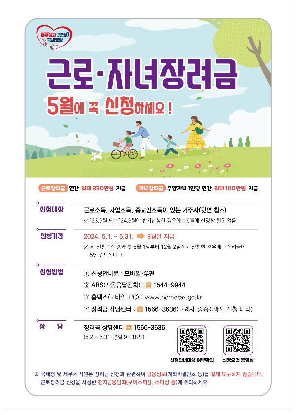 2024 자녀장려금, 근로장려금 대상자 조회