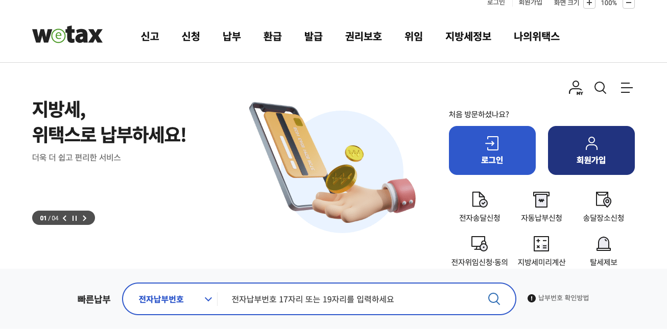 고지서에 나온 고지번호를 가지고 이텍스 또는 위텍스에서 온라인 납부를 진행합니다.