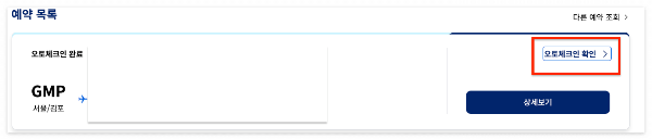 7. 오토체크인 확인을 통해 좌석 지정이 잘 되었는지 확인합니다.