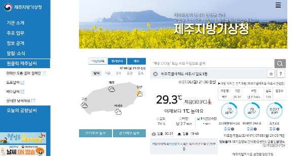 올해는 작년 여름보다 더 많은 비가 올 것으로 예측된다고 기상청에서 발표했습니다. 하지만 어쩔 수 없이 장마기간에 제주도를 여행하시는 분들은 실시간 날씨를 참고하시는 방법이 있습니다.