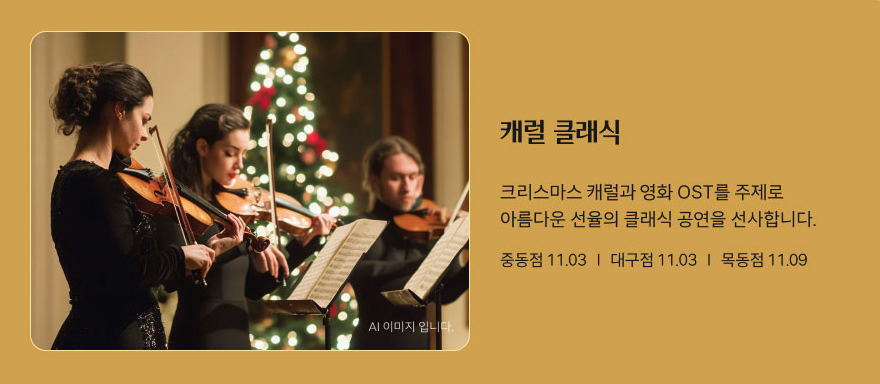 🎶 음악과 공연: 재즈 밴드, 클래식 공연, 캐롤 송 등 라이브 음악 공연이 열리며 주말에는 특별 출연도 있습니다.