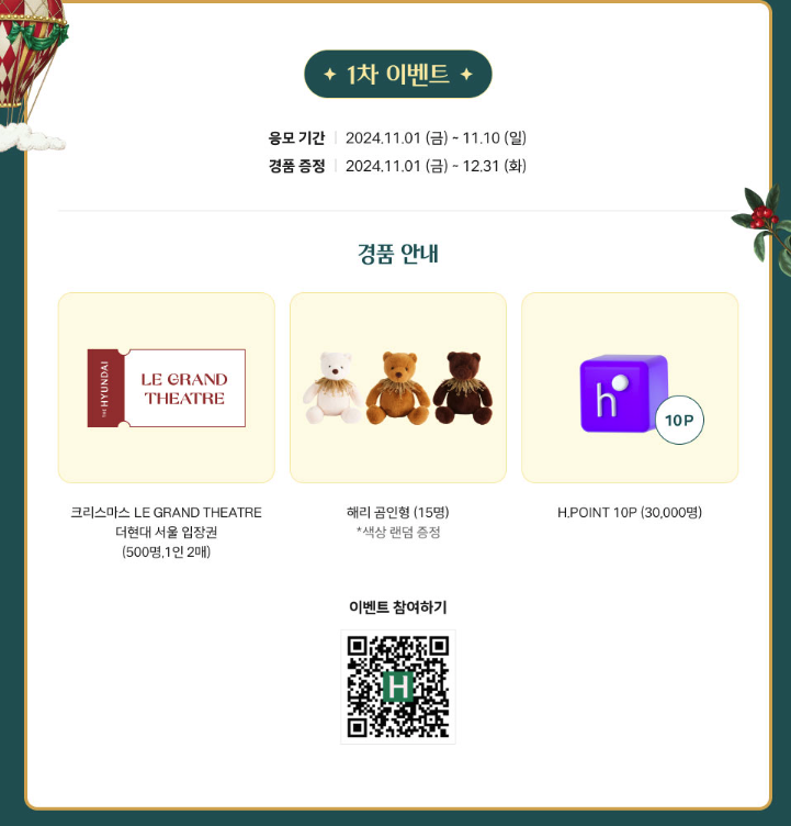 🧸 크리스마스 테디베어: 이번 행사 한정으로 출시된 테디베어와 다른 홀리데이 상품이 판매됩니다.