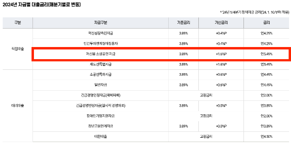 금리는 정책자금 기준 금리 +1.6% p입니다. 2024년 1분기 정책자금 기준금리는 아래 사진에 자세히 나와있습니다. 또한 우대금리는 총 3가지이며 각 0.1% P씩 금리 우대를 지원합니다. 우대금리 종류 역시 아래 사진을 확인해 보시면 됩니다.