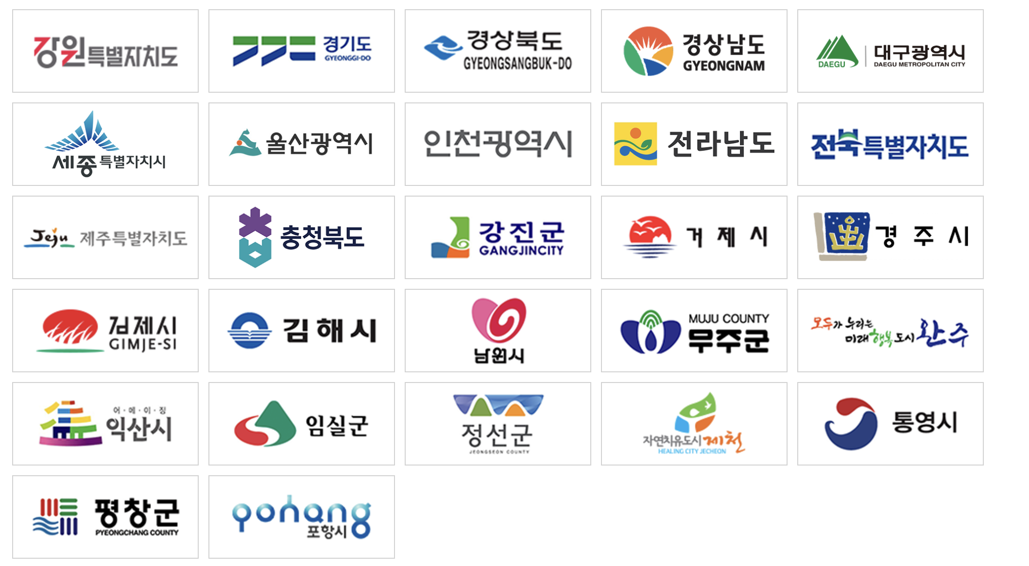 참여지자체는 대부분의 여행지라고 봐도 무방할 정도로 많은 곳에서 참여를 하고 있습니다. 강원도, 경기도, 경상도, 대구, 울산, 세종, 인천, 전라도, 제주도, 충청북도, 강진군, 거제, 경주시, 김제시, 김해시, 남원시, 무주군, 완주, 익산시, 임실군, 정선군, 제천, 통영시, 평창군, 포항시가 참여를 하고 있습니다.
