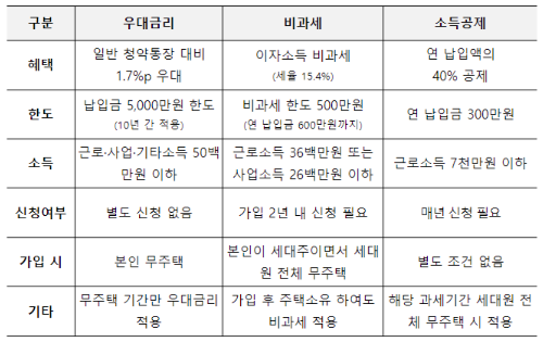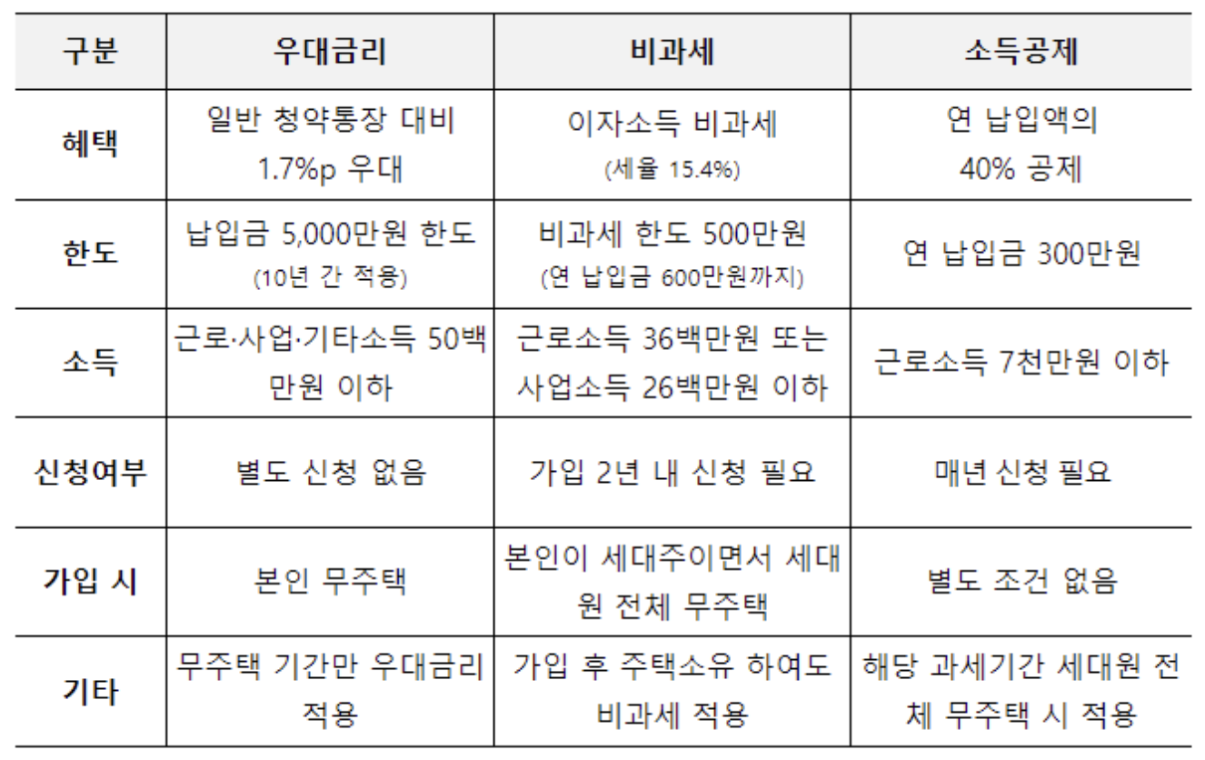 - 청약통장에 대한 이자소득은 500만원까지 비과세 세금혜택이 있습니다.