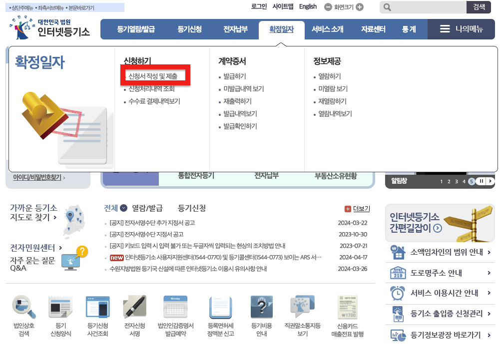 인터넷 온라인으로 확정일자 신청이 가능합니다. 주민센터에서 신청하시거나 방문이 어렵다면 인터넷등기소에서 신청하는 방법 알려드리겠습니다.