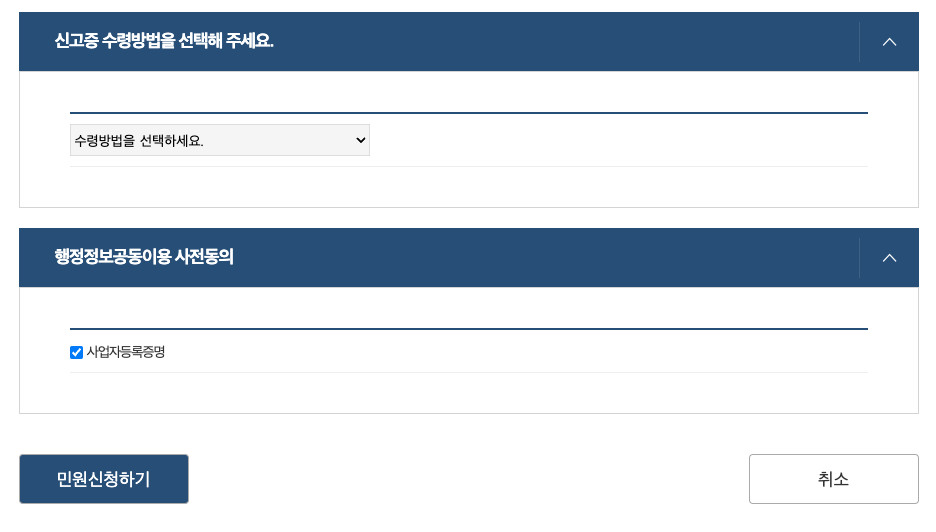 • 발급될 통신판매업 신고증 수령방법을 선택해 주시면 됩니다.
