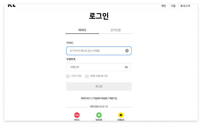 1. KT 어플을 실행 후 로그인 합니다.